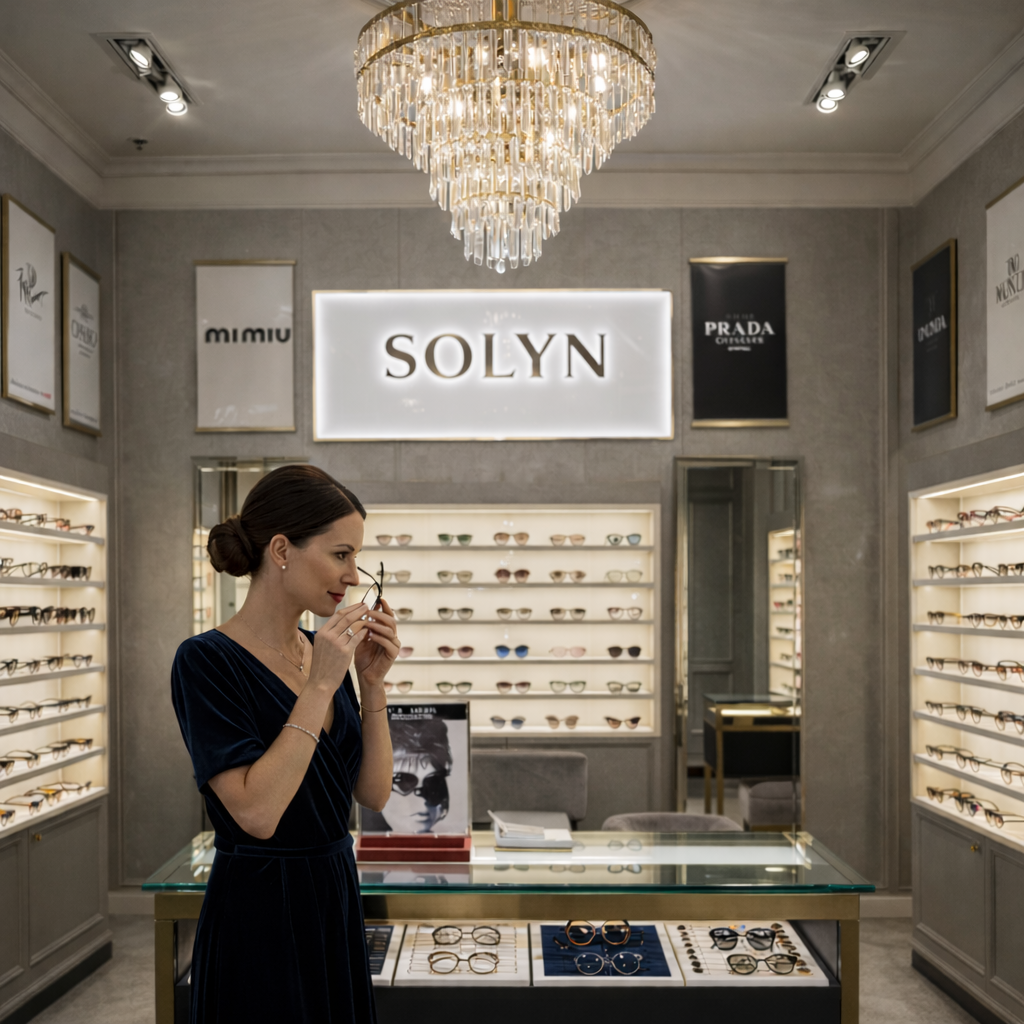 Solyn redefines luxury eyewear with timeless elegance and modern flair. Nestled in London’s most exclusive districts, our boutique curates an exquisite collection of frames from the world’s most renowned designer brands. Step into our sophisticated space, adorned with sleek marble and gilded accents, and experience personalized service that celebrates your unique style. At Solyn, every pair of glasses is a bold statement of confidence and creativity.